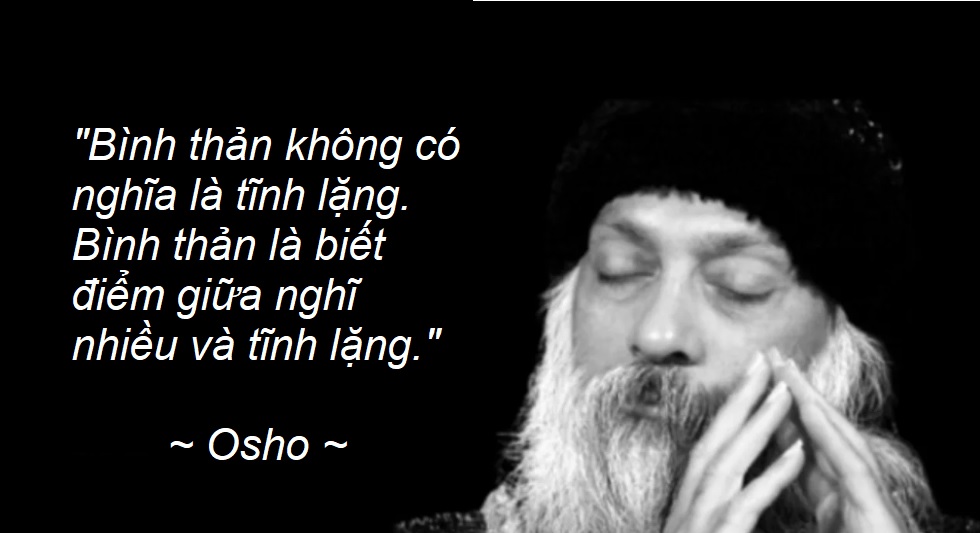 Trạng thái này được gọi là trạng thái điềm tĩnh, hay cân bằng. Nó ngụ ý rằng bây giờ cả nghĩ nhiều lẫn an bình không ảnh hưởng tới người đó. Người đó không nhìn tới chúng, cũng không phủ nhận chúng. Bây giờ người đó không ham muốn cái gì. Người đó chỉ quan sát. Người đó là nhân chứng, người chỉ quan sát. Điềm tĩnh xảy ra trong trạng thái chứng kiến. Đây là điềm tĩnh ổn định mà không thể bị phá huỷ bởi nghĩ nhiều hay bị tăng lên bởi tĩnh lặng. Nó là ở giữa cố định giữa hai điều này. Nghĩ nhiều và an bình không phải là các trạng thái ổn định vì chúng là hai mặt của việc xảy ra lớn. Điềm tĩnh là cố định. Nó là ổn định; nó là vĩnh hằng, nó là mãi mãi.